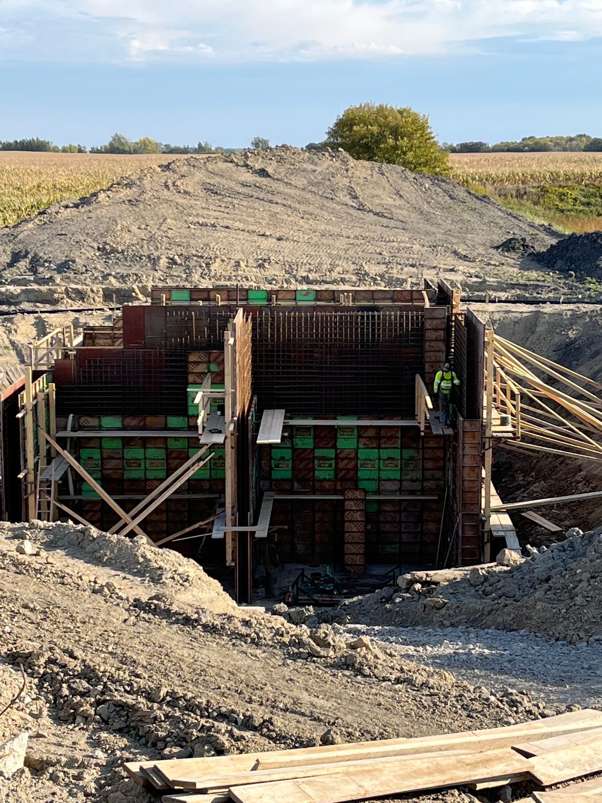 Replacement of the water control structure for Swift County south of Benson, MN. The project included rerouting the water flow around the work site, removing the existing water control device, casting a new water control device in place and regrading and installing rip rap on the discharge side of the device.