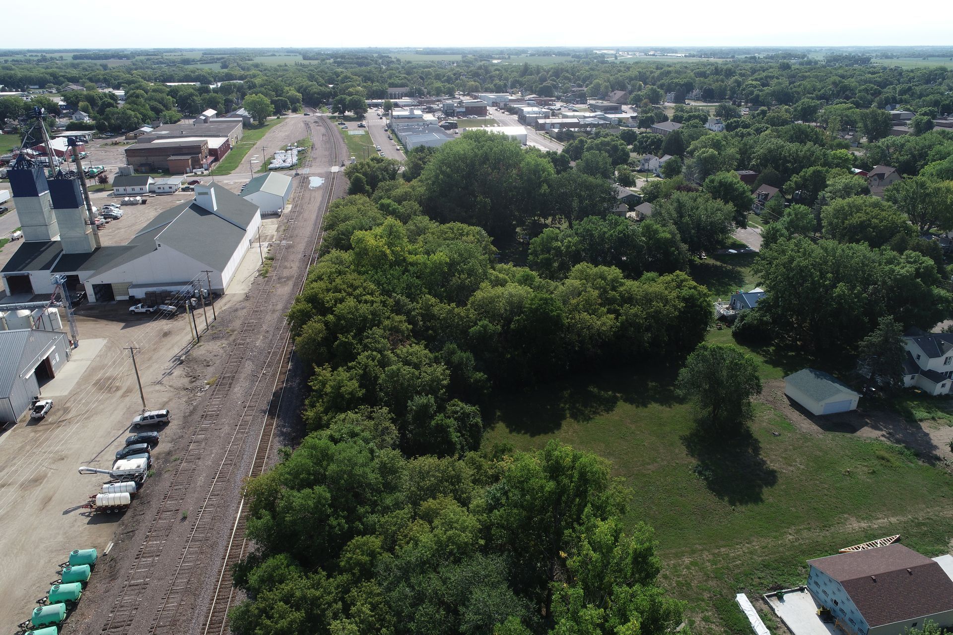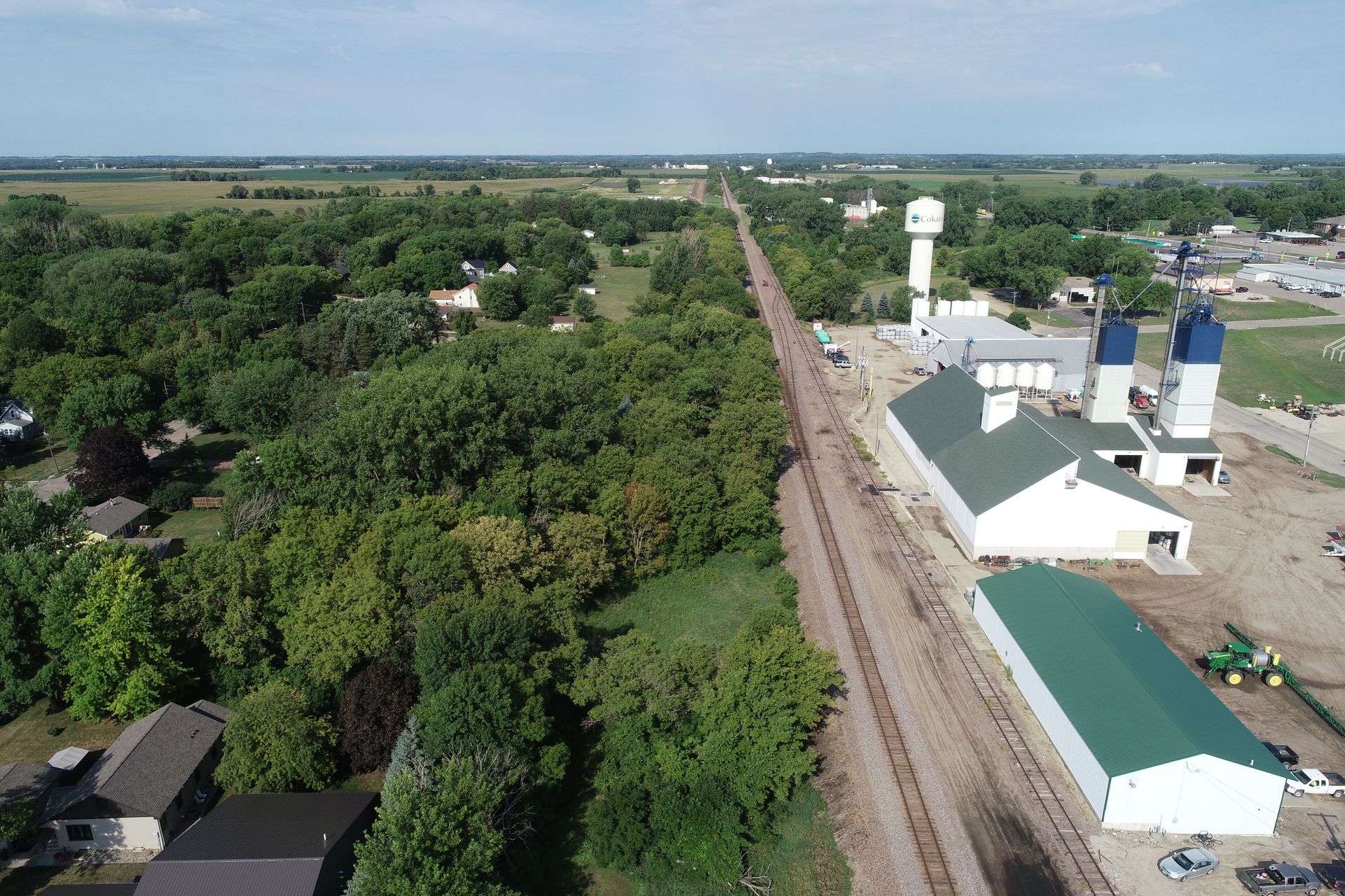 Ditch maintenance and construction for Wright County within the city limits of Cokato, MN. The project involved clearing approximately two acres of trees, reshaping the existing ditch, installing erosion control devices such as Flexamat, coir erosion control logs, ditch checks, erosion control blanket, along with mulch and seed. A new precast inlet structure was also installed. *Arial photos provided by Wright County.